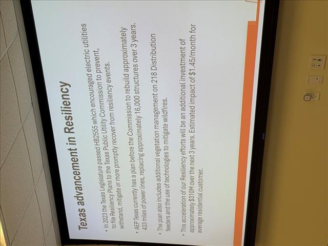 Communications Director Omar Lopez guided attendees through the outage mapping tool available on aeptexas.com, showcasing its tangible benefits for customers. Officials from the City of Corpus Christi contributed valuable insights into the inspection and permitting processes.