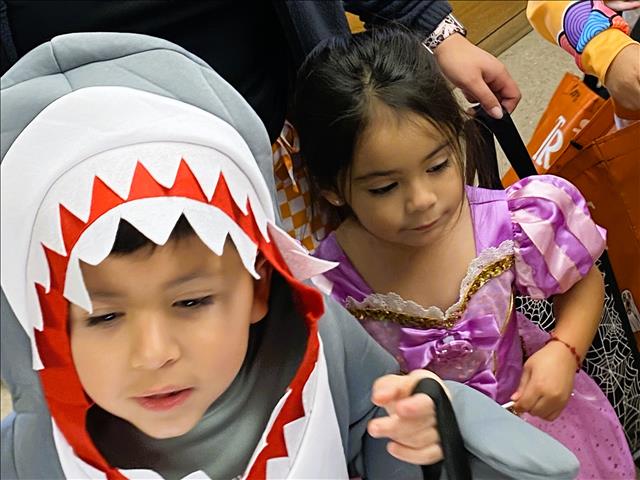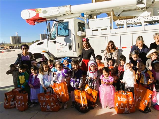 Spiderman, Princesses, sharks, and angels went trick-or-treating at the second annual Halloween candy-giveaway event at the AEP Texas McCamey Service Center. Approximately 30 pre-kinder students, teachers, and staff members visited employees and other local businesses for a safe trick-or-treating fun time on the morning of October 30.