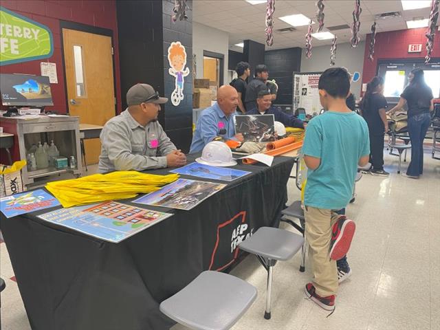 Employees with AEP Texas celebrated Career Day with students at Singleterry Elementary School on Feb. 5. Students from Pre K through 5th grade observed real equipment crews often use on the job.